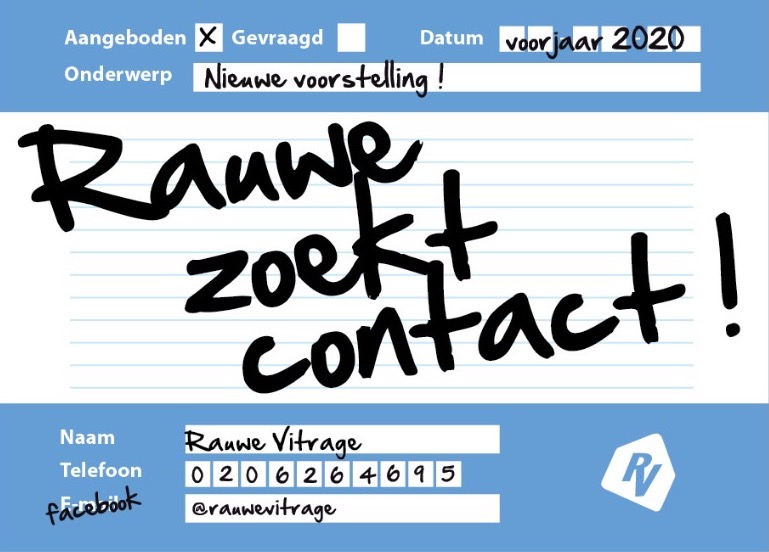 Rauwe Vitrage bestaat uit een team van ervaren impro acteurs en musici die zich al vele jaren in de nationale en internationale impro wereld begeven.